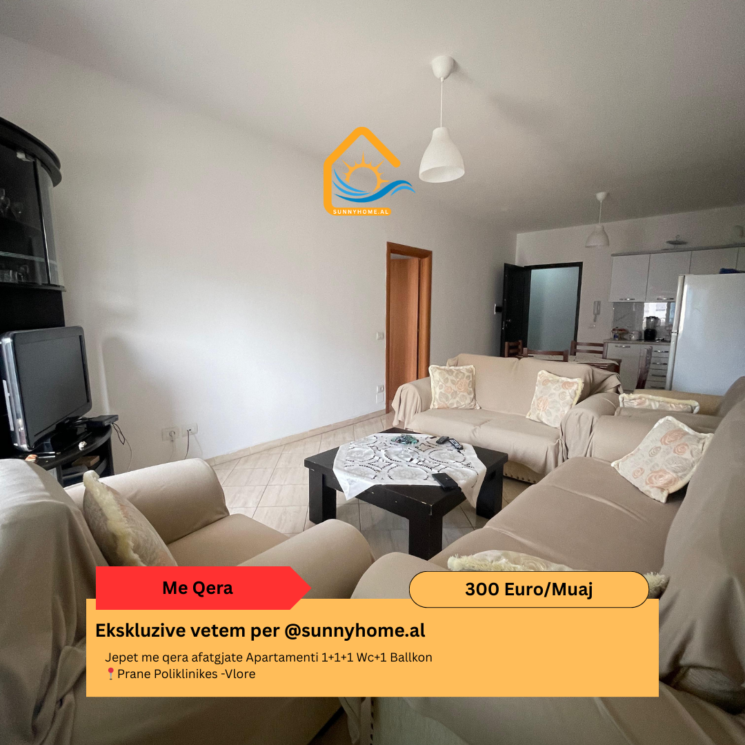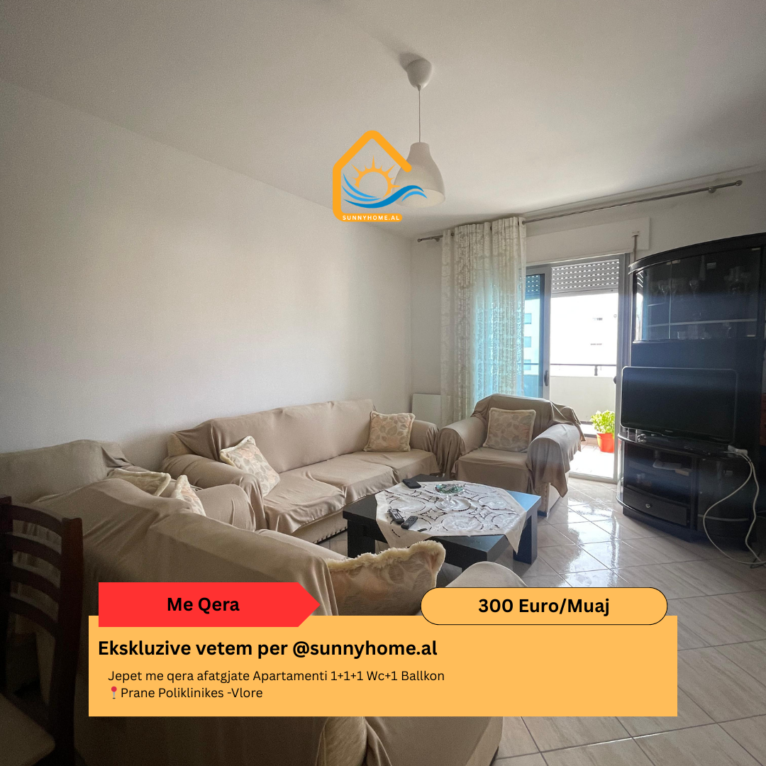 ‼️ Exclusive in Vlore for @Sunnyhome.al ‼️ Apartment for rent 2+1+2wc+2 Balconies. 📍Next to Polyclinic- Vlore Price: 350 Euro/ Month